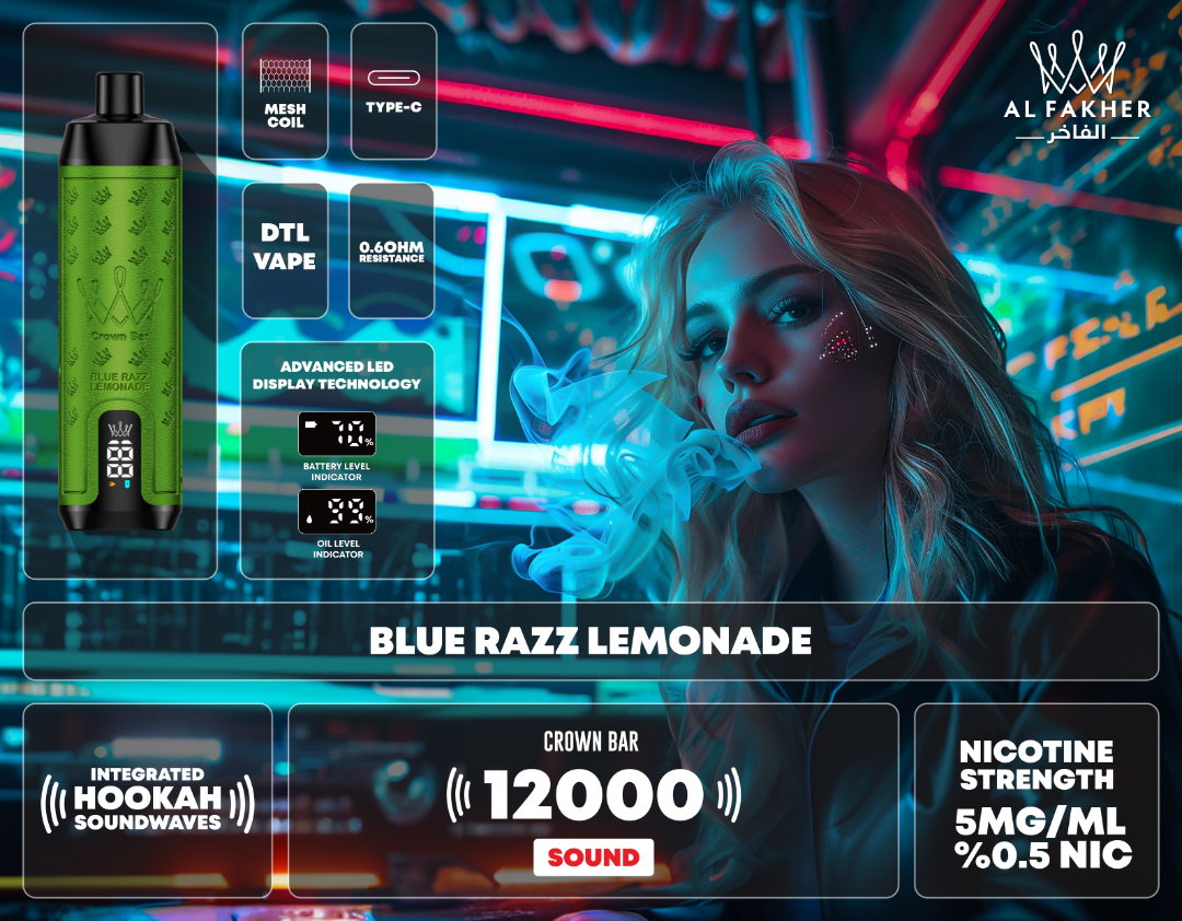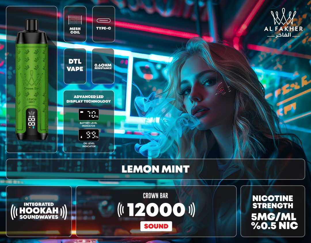 The CROWN BAR AL FAKHER 12000 Puffs 0.5MG Disposable Vape is a premium option for DTL vaping enthusiasts in Dubai. With a rechargeable battery, integrated hookah sound waves, and a digital display for easy monitoring, it delivers up to 12,000 smooth and flavorful puffs. Its 20 exciting flavors cater to all taste preferences, from fruity to minty, making it a versatile choice. The compact, lightweight design ensures portability while maintaining a maintenance-free experience. Compared to traditional disposable vapes, it is cost-effective, eco-friendly, and fully compliant with Dubai vaping laws.