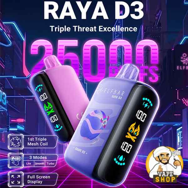 - ELF BAR Raya D3 25000 Puffs 50MG Disposable Vape – perfect for extended vaping sessions.