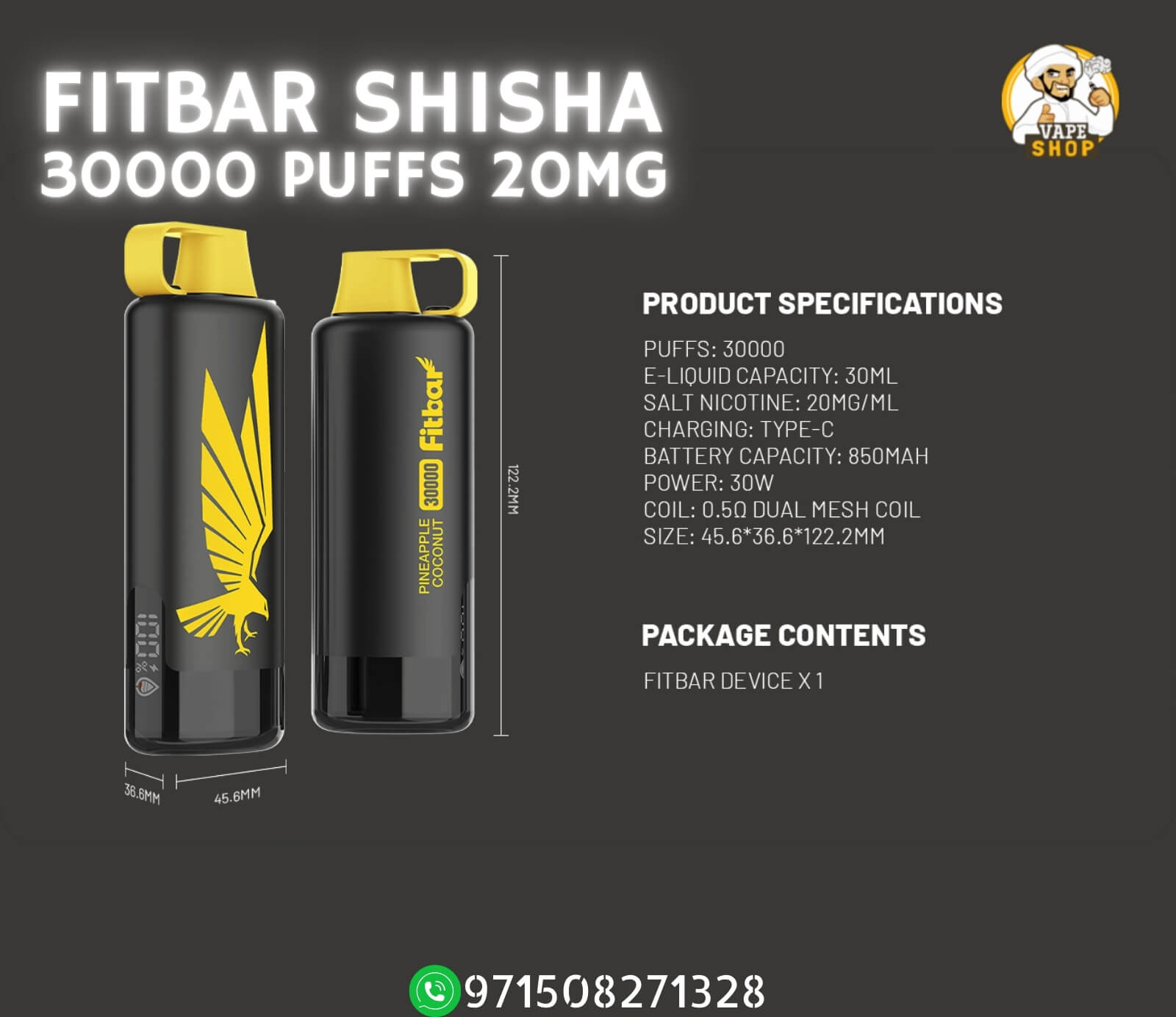 FITBAR Shisha 30000 Puffs 20MG Disposable Vape in Dubai Specifications