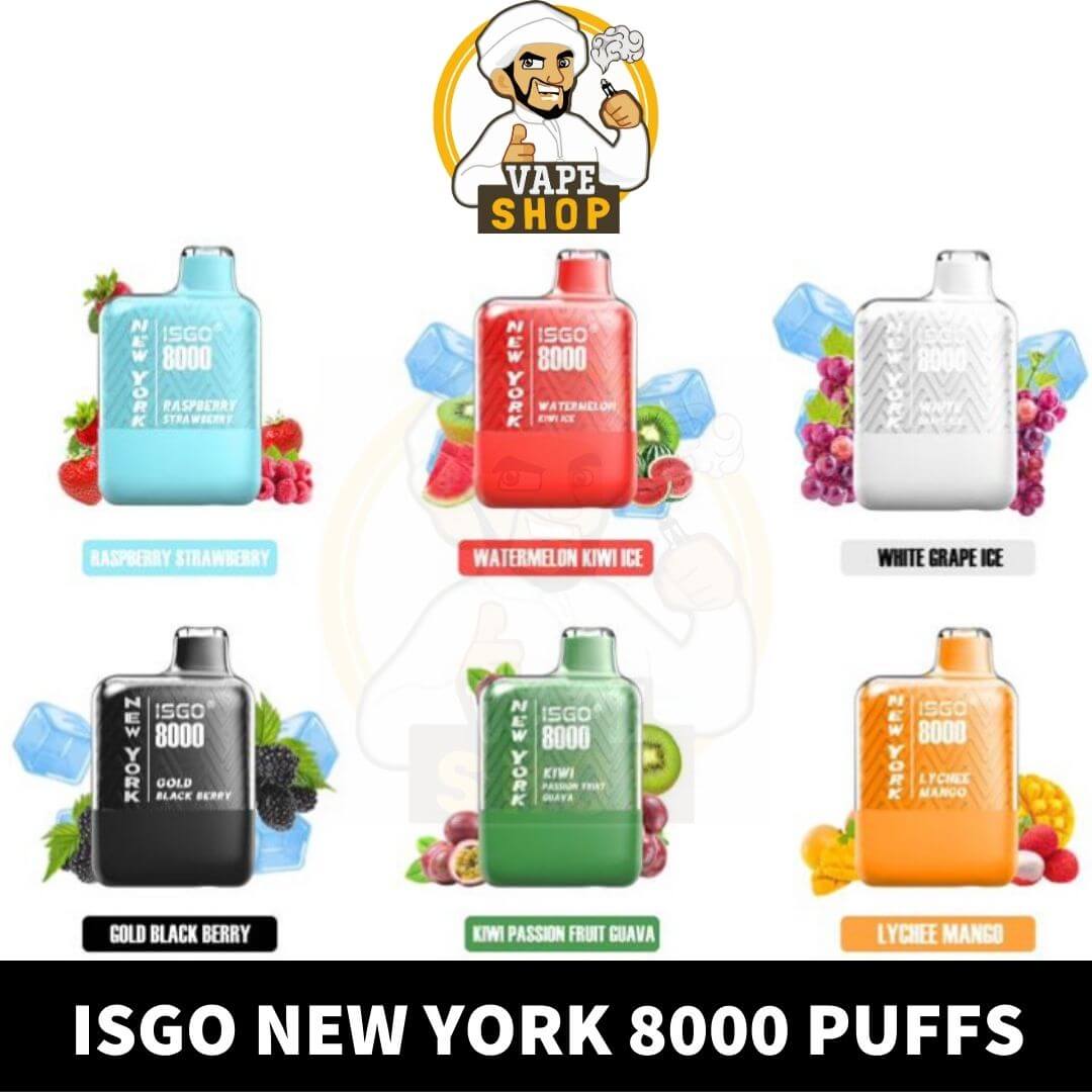 Isgo New York 8000 Puffs Rechargeable Disposable Vape shop In UAE