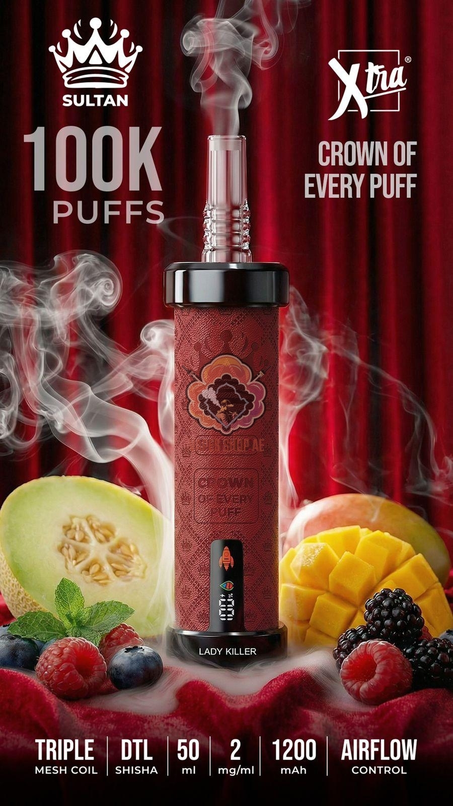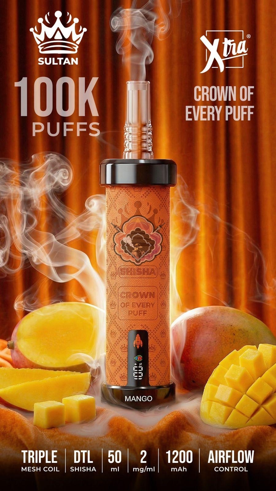 Sultan xtra shisha Dtl 100k puffs 2mg nicotine Description